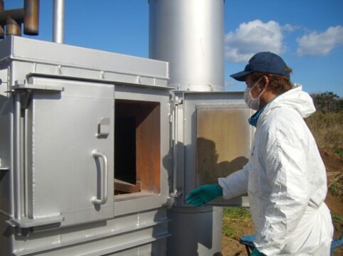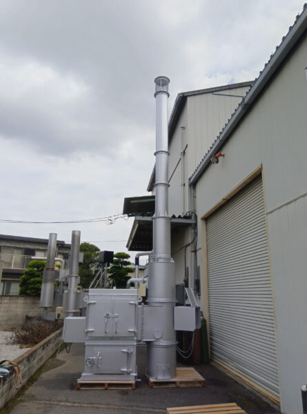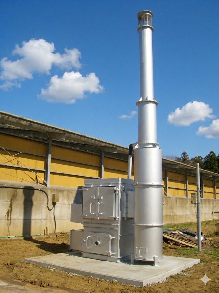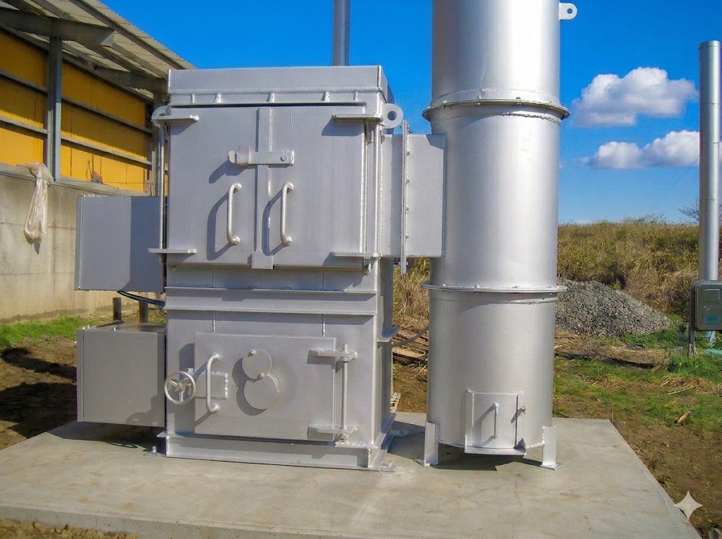 A.本モデルは「2次燃焼構造」を採用しており、高温(800℃以上)で再燃焼させることで煙や臭いを最小限に抑え、ダイオキシン類の発生基準をクリアしています。近隣住民への配慮が必要な農場でも安心して導入いただけます。