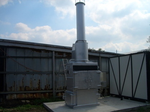 燃焼室に空気を送る送風機(ブロアー)を備え、炉内壁数十か所から燃焼用空気を送ります。