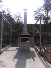 約100mmの壁の厚さで施工し、高温での燃焼に十分な耐久性を持たせています。